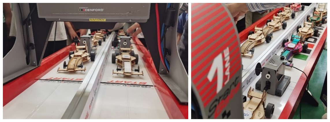 开幕式后,裁判员与所有参赛队伍于工程训练中心西100训练场正式开始现场竞速比赛,现场同学们气氛高涨,竞速如火如荼,经过激烈的角逐,最终有17名同学脱颖而出,将继续优化小车设计,备战决赛。