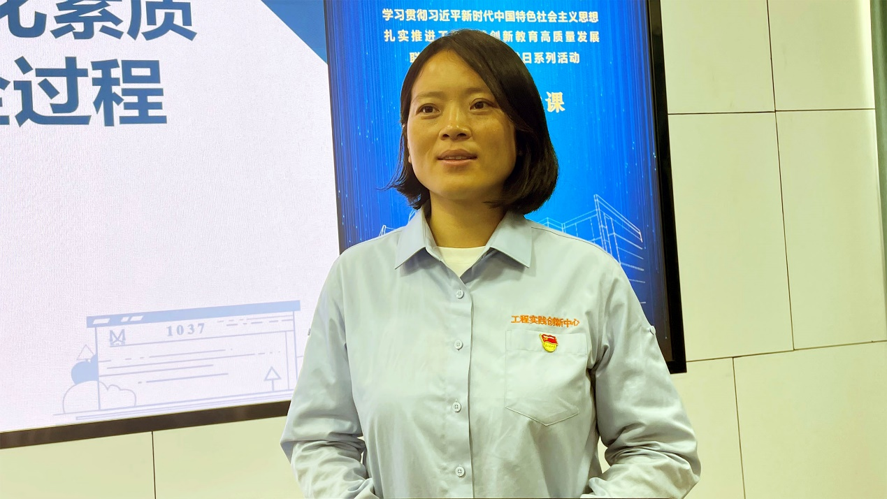 华中科技大学工程实践创新中心代表周琴以《坚持守正创新,将文化素质教育贯穿工程训练全过程》为题,从“文化融合”、“文化课程”、“文化氛围”三方面介绍了华中科技大学工程实践创新中心将文化素质教育贯彻到工程训练全过程的建设思路和成效。