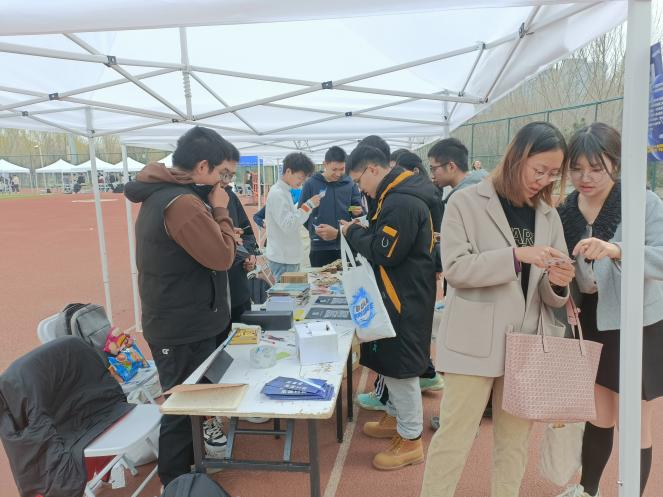 社团骨干们早早便来到招新场地,着手布置外场摊位。上午十点社团招新活动正式开始,广受喜爱的二十四点游戏和需要两人协作的你画我猜游戏受到同学们的关注,烧脑的二十四点游戏让不少同学跃跃欲试,低头深思;需要一定默契度的你画我猜游戏也让同学们迫不及待两两组队,携手挑战。社团招新活动氛围和谐,充满欢声笑语。