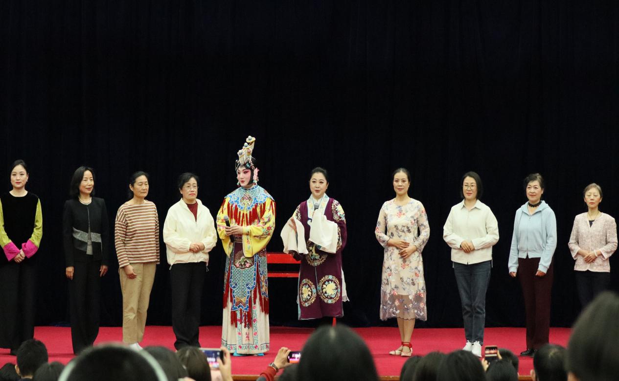 京剧表演环节,北航京剧协会离退休老教师们演唱梅派经典剧目《凤还巢》《太真外传》选段,宛转悠扬;北航曲艺团戏曲队员工演绎《霸王别姬》选段,虞姬剑舞“刺”“挑”“收”间饱含深情;北京京剧院演员演绎《三岔口》选段,技艺精湛,高难度武打动作引得阵阵喝彩;谭茗心老师演唱《穆桂英挂帅》选段,嗓音清亮、感染力强,尽显巾帼英雄风范。整场报告在全体参演师生共同演唱的《梨花颂》中落下帷幕,掌声经久不息,现场反响热烈。