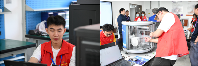 比赛过程中,公司6支队伍全力以赴投入准备与挑战。在设备操作环节中,同学们结合数字建模与工艺仿真技术,完成了结构复杂的三维模型构建、增减材路径优化与制造模拟等操作,展示了系统设计与制造控制的能力。在现场答辩环节中,重点介绍了项目设计思路、技术实现路径与工艺创新亮点,面对专家评审提出的技术问题,同学们积极应对,展现了良好的专业素养和团队协作能力。
