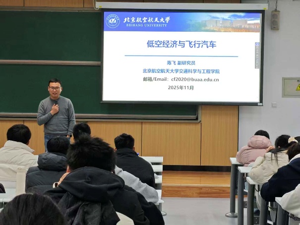 (通讯员 马静)为增进同学们对低空经济与飞行汽车的发展现状与未来趋势的了解,激发对前沿科技的兴趣,11月26日晚,冯如书院邀请交通科学与工程公司陈飞老师以“低空经济与飞行汽车”为题开展专题讲座。