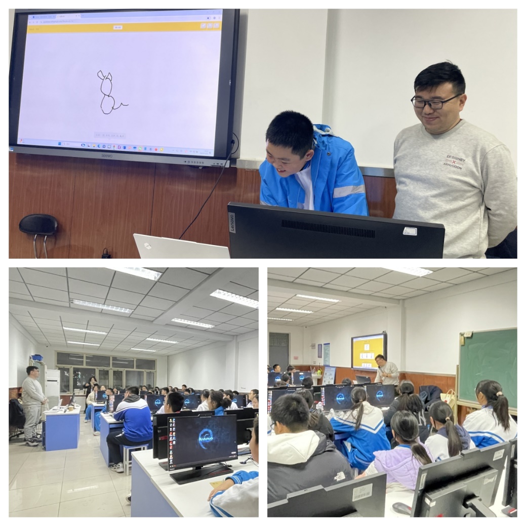 最让同学们兴奋的是互动体验环节。同学们与AI展开了一场我画你猜的游戏,当AI小程序轻松猜出同学们的涂鸦后,惊叹声与掌声此起彼伏。亲手“唤醒”AI的体验,让科技从课本中的名词化作指尖可感的体验;一问一答中,科学的种子已悄然播下。