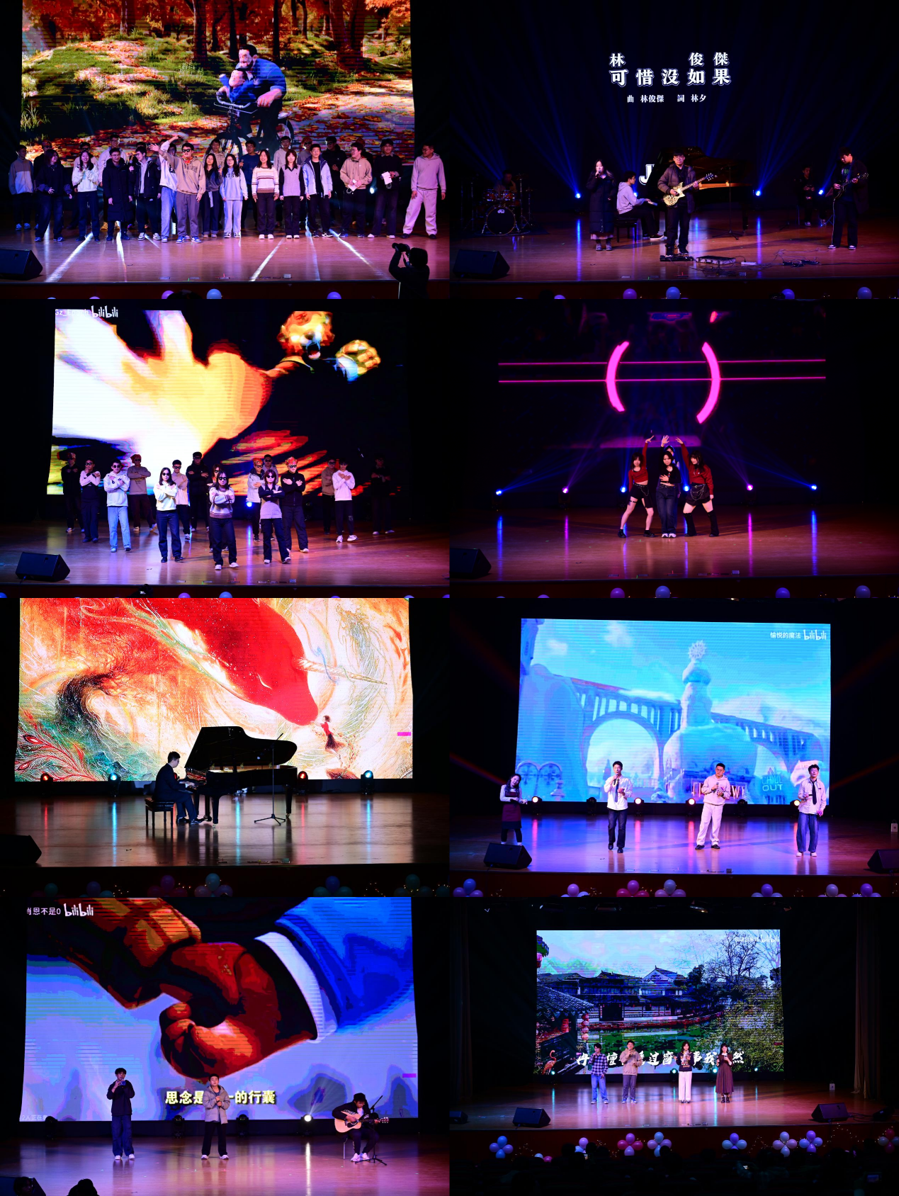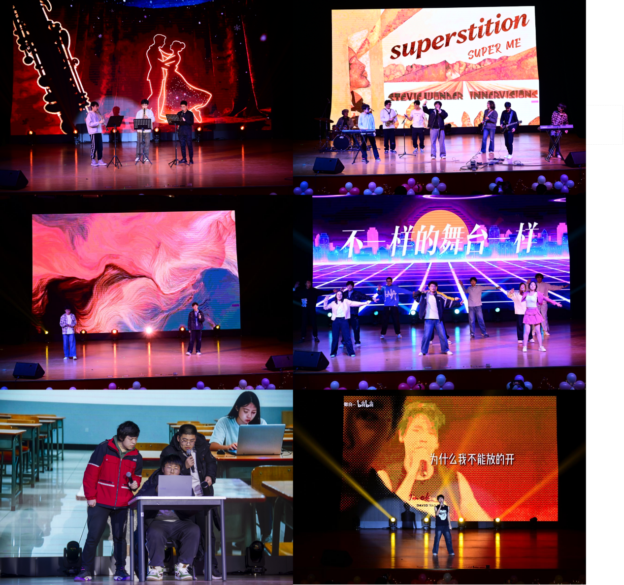 在第二篇章“青衿逐梦 履践留痕”中,单簧管三重奏《一步之遥》,用器乐交织出浪漫与遗憾,Super Me 乐队的《Superstition》以复古节奏炸场,诠释青春不羁,《一笑浮生》借清雅歌声勾勒江湖意气,一大班集体节目《舞动青春》以活力舞步掀动高潮,马丁的《小镇姑娘》用清甜歌声唤醒年少回忆,三大班《当C语言考试还剩 15 分钟》则以幽默情景剧戳中备考共鸣,不同风格的节目交织出青春的多元色彩。