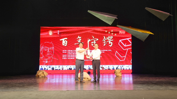 在演出正式开始前,校团委、守锷书院负责人与南浔区领导一起回顾了近年来双方联合举办的“守锷101周年纪念活动暨屠守锷奖学金启动仪式”、建设“老员工红色‘1+1’实践基地”和“老员工社会实践基地”等友好合作,期待未来在爱国主义教育、美育文化建设等方面进一步加深合作。随后,北航校团委书记庄岩代表北航向南浔区赠送了“长征2号”运载火箭(由屠守锷院士领导设计)模型。