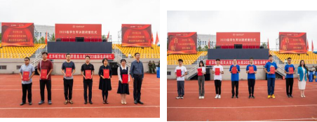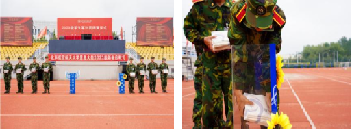 首先,来自专业公司的领导和2023级新生代表为军训指导员赠送纪念品。薄礼厚意,全体新生向各位指导员的关心照顾表达了感激,更表达了对来自各专业公司的指导员的感谢。