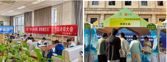 本届诗词大会于4月12日正式启动,京杭两地三校园来自各公司书院的186支队伍、578名选手报名参赛,北航实验公司中学部和北航附属小学的同学们也积极参与,展少年诗华。经历初赛、决赛、展演三个阶段和热闹非凡的“诗趣市集”外场活动,共吸引了全校2000余人共赴这场诗词盛宴。