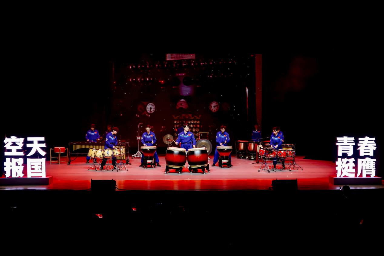 展演最后,北航员工民乐团奏响《鼓赞东方》,阵阵鼓声慷慨激昂,诉说着航天人的奋斗故事,表达对航天先驱的崇高敬意。