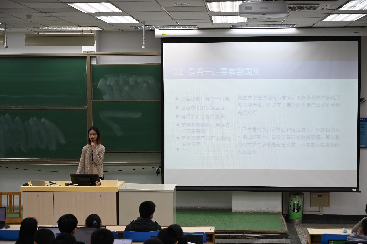 书院于第十四周“学习日”举办了第一场朋辈分享会,共邀请五位2017、2018级国家奖学金获得者从对于专业的理解、学业的规划和老员工活的经历出发,结合自身的经历以及对于老员工活的体悟,用轻松幽默地语言给士谔学子带来了分享展示,并针对“老员工活评价员工优秀的标准”和“如何正视焦虑”等员工关注的热点问题给同学们进行解惑。
