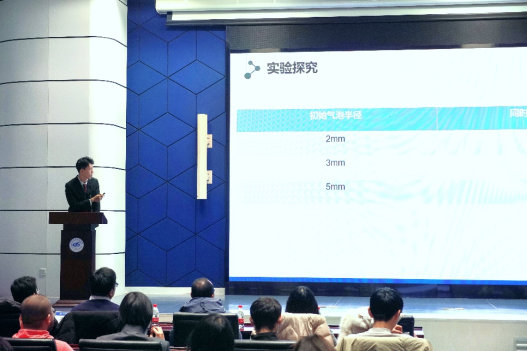 各同学从选题背景、模型原理、实用性分析、创新性分析等多个方面队自己的项目进行了阐述。经评委评分,“基于欧氏距离与SVM理论的静态指语识别系统设计及比较研究”等2个项目获评一等奖,“仿鲨鱼皮盾形结构超滑表面的构筑及减阻性能研究”等3个项目获评二等奖,“振动液体内气泡下沉现象的研究”等7个项目获评三等奖,“关于实现隐身的构想”等8个项目获评优胜奖。