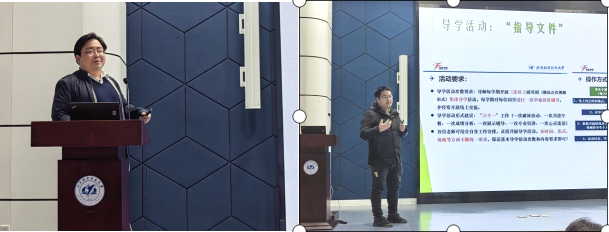 书院导师代表方杰、朱秉均分别分享了个人导学经验。方杰老师通过自身担任一年级学业导师、二三年级专属导师、四年级毕设导师之间的区别与联系,整合团队资源,建立起“导师-朋辈”指导体系,收获良好的导学效果。朱秉均老师首次担任书院本科生导师,他用“真实、融入、时间”三个词语,让参会导师们切实感受到了其导学的用情、用心。学业总导师陈志英总结了自己“XDP”导学中遇到的困难及解决的思路和方法,他强调要寓教于乐、因材施教、教学相长,尊重员工的个性和思想,引导员工热爱生活、发掘兴趣,选择适合自己的专业。