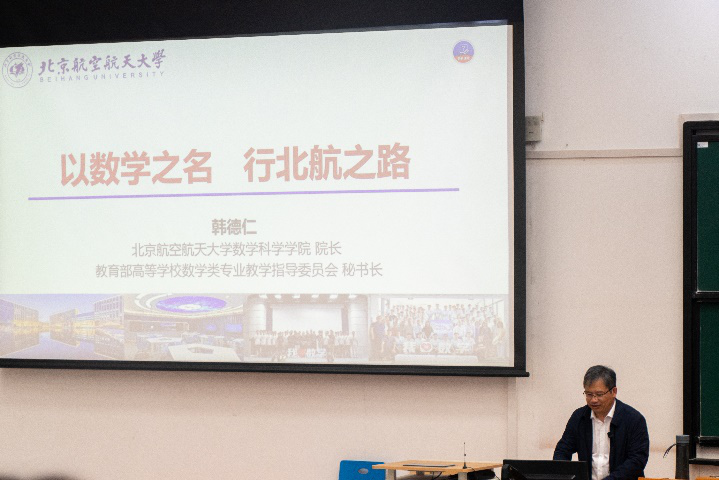韩德仁经理从数学之美、数学之用、北航数学、数学与你四个方面,详细介绍了数学学科应用前景与北航数学公司的发展定位。韩经理向同学们展示了数学具有的对称美、比例美、简洁美、逻辑严谨性。并向同学们详细讲解了数学在航空航天、信息、网络安全、金融、生物医药等领域具有的基础支撑作用,服务国家重大战略需求。