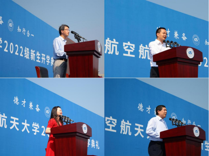 在新生发言环节,信息大类新生代表张成溪、谭婧怡、郑玉洁、张明远、贾锡冰、魏新明表达了对未来四年北航生活的向往与期待,表示要追随着北航前辈的指引,把一代代北航人空天报国、敢为人先的精神传递下去。