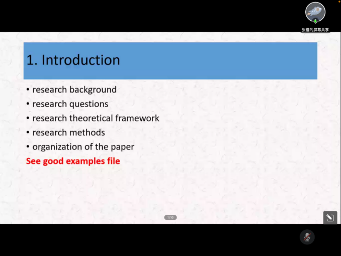 选定研究课题后,张老师以具体文献为例,向同学们详细介绍了如何规范撰写学术论文的各个部分,即摘要与关键词、引言、文献综述、研究方法、研究结果、研究讨论、结语(结论)、和参考文献,并细心指导相关细节上的处理。