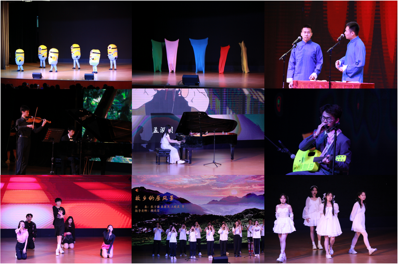 晚会过程中,舞蹈《minionscary bedding beg》展现了搞怪与可爱交织的青春风采,相声《梦想清单》、《鸿门宴》以各具特色的包袱引得观众捧腹大笑,钢琴曲《Flower Dance》、《降E大调夜曲》、吉他指弹《流行的云》、陶笛群奏《故乡的原风景》以及钢琴小提琴合奏《Komorebi》为晚会注入了许多高雅的艺术气息,独唱《初爱》、《她说》、《这一季》和《Dangerously》展现了同学们对歌曲的独到理解与热爱,舞蹈《Tomboy》和歌舞《冬日》则将热情与优雅表演得淋漓尽致,小游戏“听歌识曲”、“‘导’演我猜”更是为同学们带来了诸多欢乐。