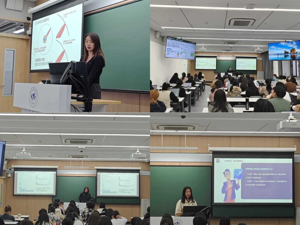 高研院邀请了四位竞赛经验丰富,竞赛成绩突出的员工进行竞赛经验分享。经济学专业的张嘉钰同学主要针对“怎样写好一篇竞赛论文”“怎样做好答辩准备”“参加竞赛的意义”这些问题进行分享与答疑,以自己参加各类竞赛的亲身经历,用生动通俗的语言结合现场演示,为知行书院同学们带来了干货满满的竞赛指南;法学专业的乔可同学分享了自己两次参加冯如杯的经历,向同学们介绍了有关论文格式规范、竞赛设置时间等相关情况,鼓励同学们大胆创新、积极思考、勇于参与;行政管理专业的黄海赟同学主要分享了写作论文过程中运用到的研究方法以及对应的软件,向同学们简单介绍了各类学术工具的作用和区别,直观地展示了科学技术在人文社科领域所发挥的重要作用;同样来自行政管理专业的周祎同学以自己独特的参赛经历给予大家在红旅赛道经验借鉴,并分析了公益类内容与商业类内容以及红旅赛道与其他学术类赛道的区别,提倡同学们根据自己的兴趣选择更加适合自己的赛道。