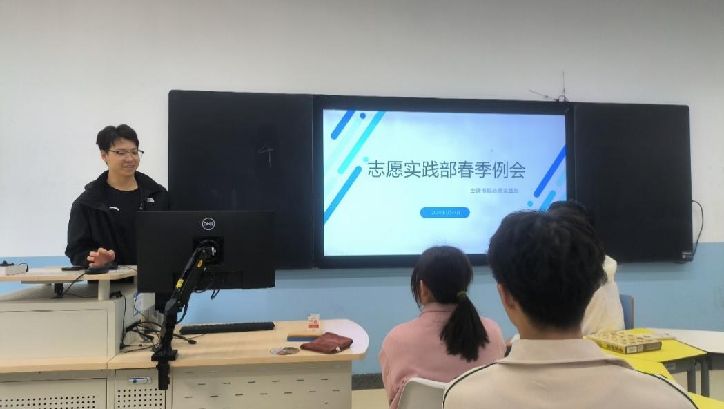 志愿实践部部长丁之珩向大家展示了每名干事的工作成果,高度评价了秋季学期工作的完成度和效率,并对新学期的工作提出了更高的要求。