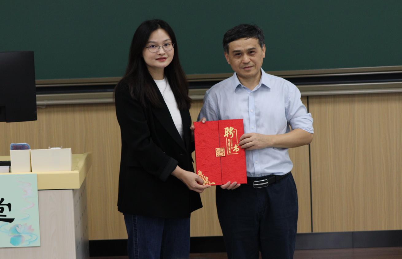 知行书院王亚老师为刘后滨老师颁发知行书院特聘导师聘书,表达了未来加强学科交流,共同促进员工全面发展的希望,并鼓励同学们要深刻学习和掌握中华文明的连续性、创新性、统一性、包容性、和平性,传承和发扬中华优秀传统文化。