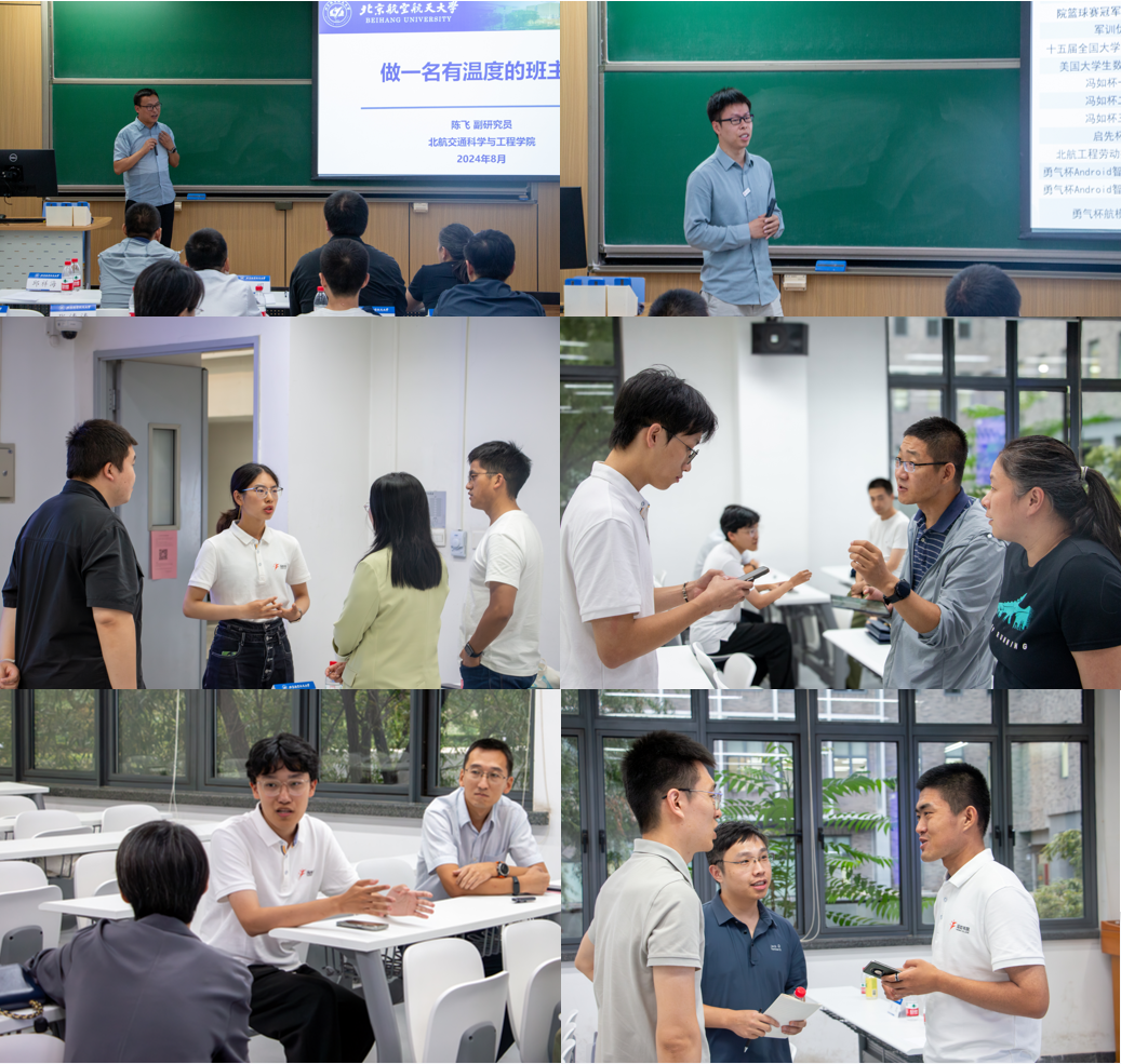 随后,专职辅导员许政重点介绍了班主任工作的重要性、岗位职责、工作原则及工作制度等,并结合书院近年的工作经验为班主任们提供了工作建议。他建议班主任们配合公司把握好新生状态,把握好开学第一个月,打牢班级建设工作的基础,与辅导员、书院积极沟通,实现多方协作。能源与动力工程公司邱祥海老师、交通科学与工程公司陈飞老师交流班主任工作经验,他们通过自身担任本科生班主任的经历,从班风学风管理方法、师生谈心交流方法等分享了经验,建议老师们帮助新生尽快适应大学的学习生活节奏,用心启航,用力护航,用情共航。