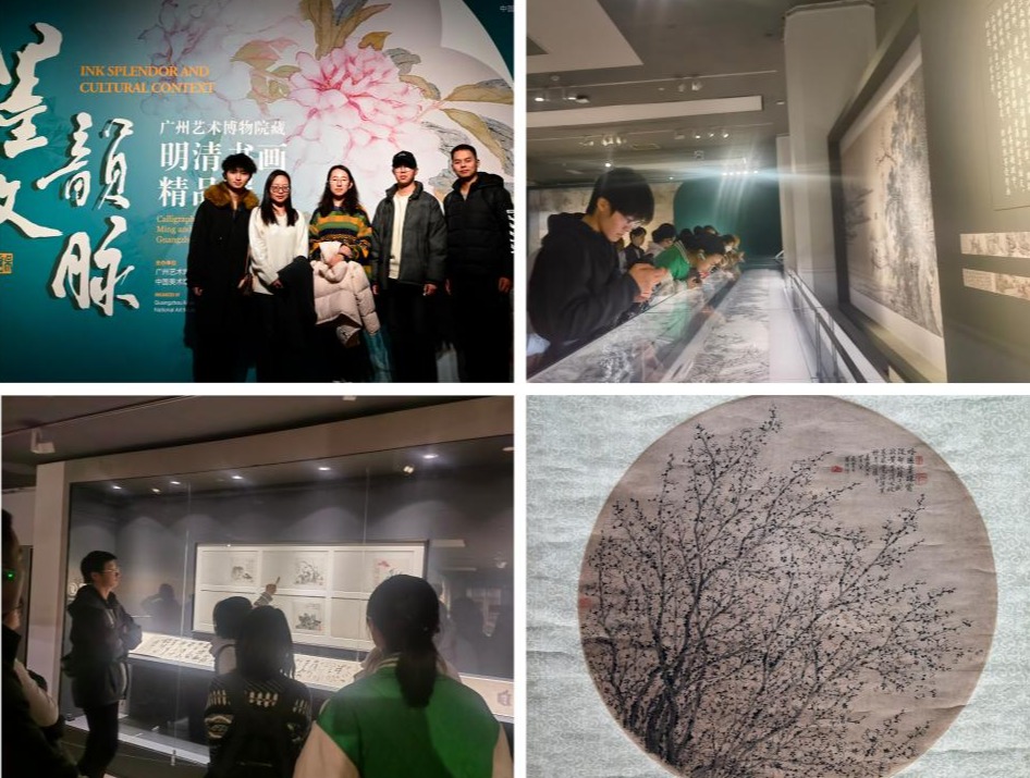 “墨韵文脉”展览汇聚了广州艺术博物院珍藏的众多明清书画精品,涵盖了书法、绘画等多个艺术门类。这些作品不仅技艺精湛,更蕴含着深厚的文化内涵和历史价值。在参观过程中,同学们认真聆听讲解,仔细品味明清时期艺术家的创作思想与艺术表达,对于岭南文化的独特魅力有了全新的认知。在加深对中华优秀传统文化理解的同时,提升个人审美层次,丰富情感体验。