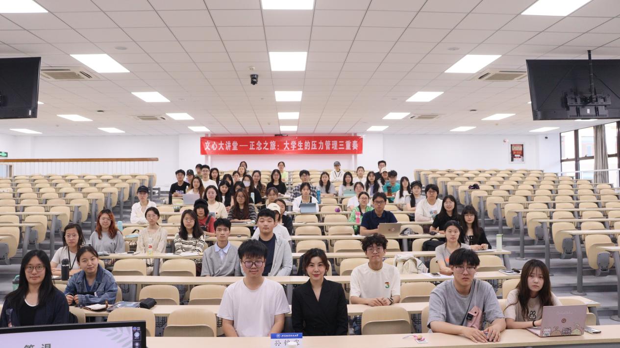 孙锦露老师以新生适应性问题为切入点,深入剖析了新生的压力来源与应对策略。她指出,大学新生在环境适应、学业挑战及人际关系重构等方面面临多重变化,这些因素易引发心理压力。为帮助员工科学认知压力状态,孙老师引导同学们进行了压力自测,并结合“耶基斯-多得森定律”指出,适度的压力可激活个体潜能、提升效能,但长期处于高压状态则易导致身心耗竭。她强调,压力是生活的常态,关键在于掌握科学的应对方法,与压力和谐共处。最后,孙老师带领同学们体验了“正念觉察呼吸”,帮助大家察觉和接纳自己的身体状态。