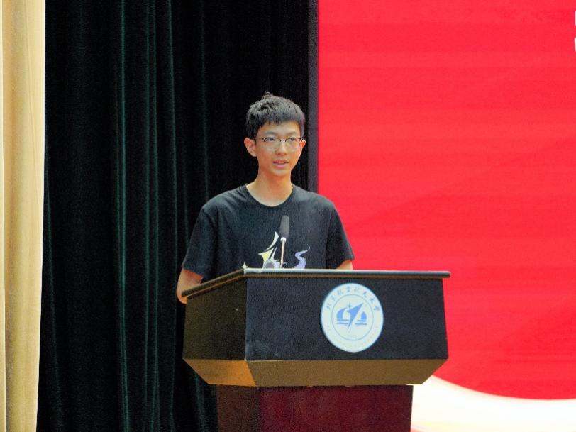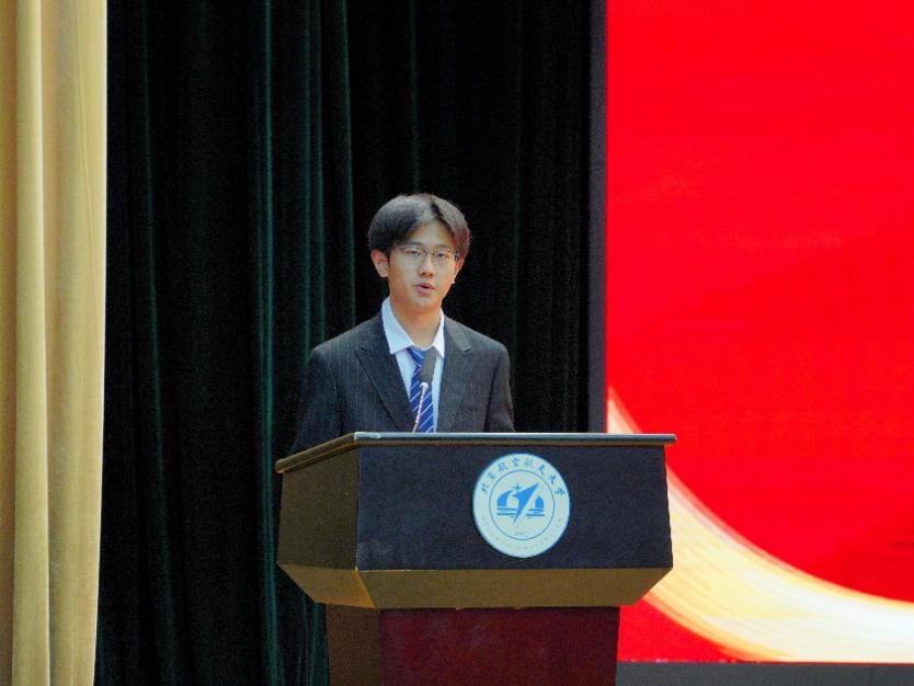 来自257711的隋昊轩作为新生代表发言。隋昊轩分享了自己对于基础学科支撑服务国家重大战略需求的理解,并表示作为一名问天者要以青春为笔、以奋斗为墨,善问力行、挺膺担当,努力成长为堪当民族复兴重任的时代新人。