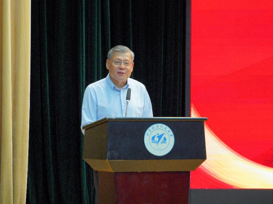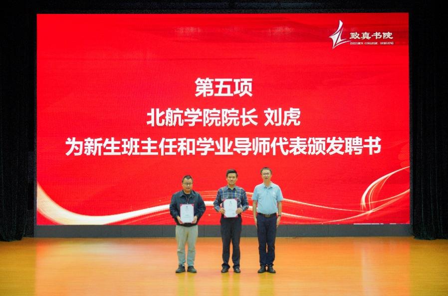 致真书院经理刘志新在启航礼上讲话。刘志新对197名问天者表示热烈的欢迎和衷心的祝贺。他介绍了九三阅兵中“大国重器”背后彰显的北航力量,并希望同学们弘扬“家文化”,营造互助氛围,同行携手成长,收获满满的认同感、幸福感和使命感;传承“好学风”,深化专业认知,夯实数理基础,筑牢学术成长和科研启航的根基;凝聚“正气旋”,厚植家国情怀,锚定发展向位,将个人理想融入中国式现代化的宏伟蓝图。