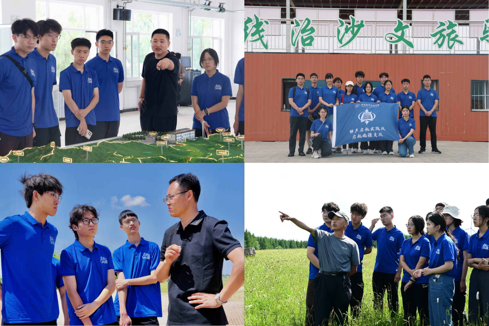 在差异化治沙与绿色能源的协同推进中,读懂生态经济的赤峰路径。实践队深入克什克腾旗浑善达克沙地,考察草方格固沙与木棍固沙等差异化治理策略,了解畜牧业转型与生态恢复的双赢实践。队员们还走访芝瑞镇小麦种植基地、生态林网和风力发电站,切身感受绿色发展带来的生态与民生双重效益。