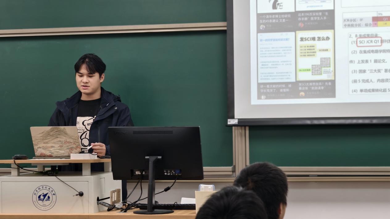活动中,书院辅导员熊号堃以 “科创赛事全流程解析” 为主题,系统梳理了各类学科竞赛、科研创新项目的申报要求、研究方向与实施路径,帮助员工构建起 “认知 - 准备 - 参赛” 的完整逻辑体系。结合北航学子在国家级、校级科创赛事中的获奖案例,他还针对性分享了文献检索、团队协作、项目答辩等科研基础知识,同时给出分阶段参赛时间规划建议,为同学们科学备赛提供实操性指导。