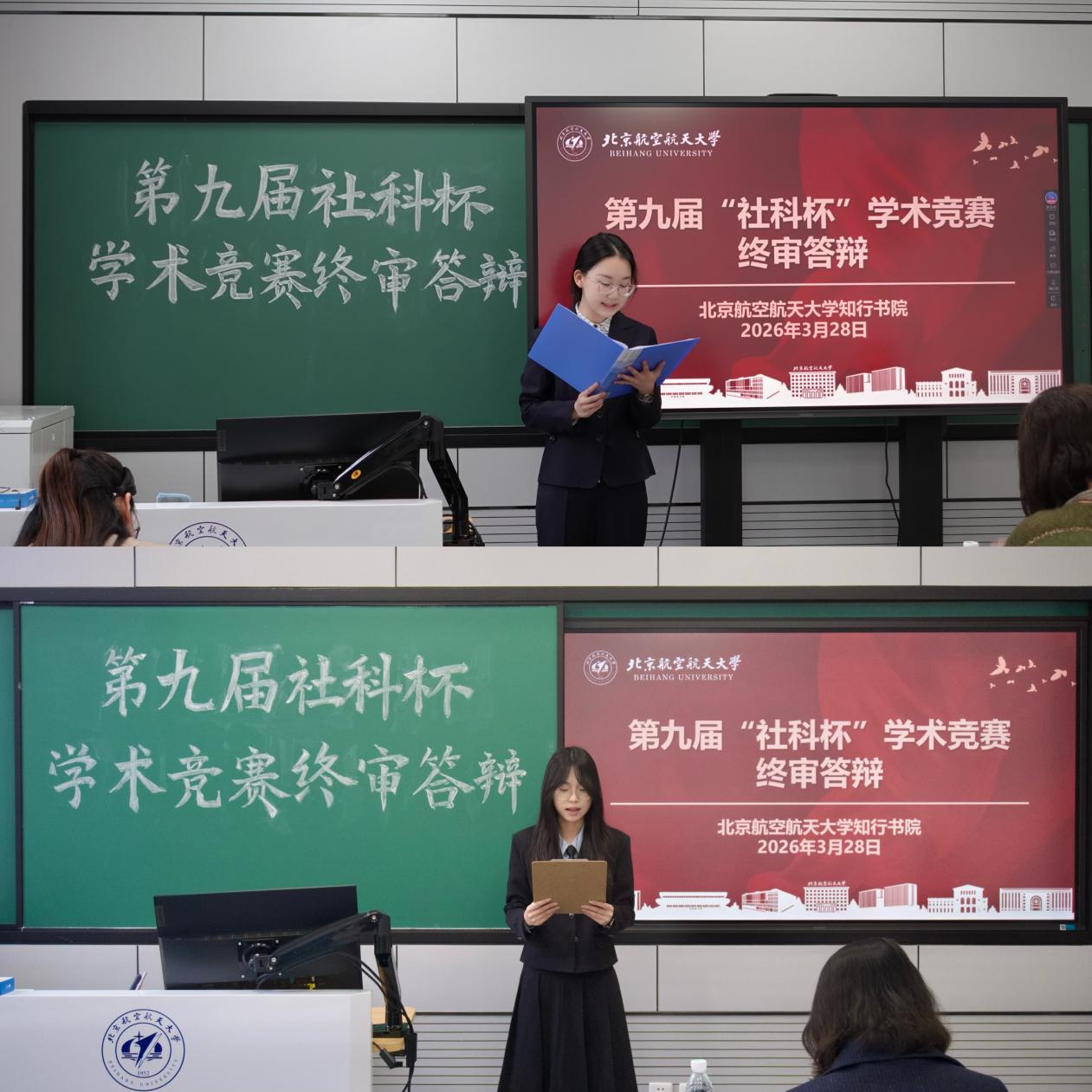 3月28日下午,知行书院第九届“社科杯”学术竞赛终审答辩在公司路校区主南204、主南206教室举行。各参赛队伍围绕人工智能、基层治理、数字法治等社会热点与现实问题开展研究。答辩现场,员工通过PPT展示、数据分析、案例展示等形式汇报研究成果。评委针对论文的研究方法、学术规范和逻辑结构进行提问与点评,肯定员工在选题立意、实地调研方面的投入,同时就样本代表性、方案可行性、数据来源等方面提出具体修改建议,帮助同学们掌握科学的研究方法,为进一步开展学术研究打下坚实基础。