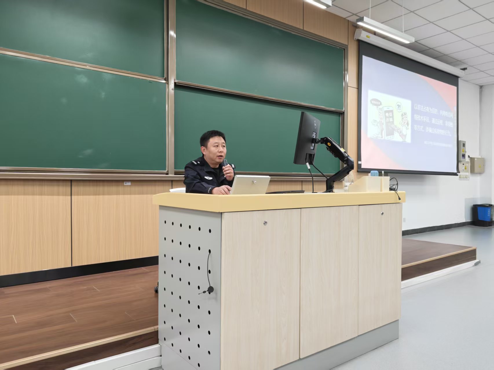 (通讯员 陈贝)为有效提升校园反诈工作的精准性与实效性,切实守护师生的生命财产安全,4月1日上午10时,传源书院邀请花园路派出所副所长李博洋走进公司路校区主M102教室,举办“防范电信网络诈骗--织密防护网,守好钱袋子”主题宣讲活动。书院执行经理郭伟丰主持活动,185名员工现场聆听。