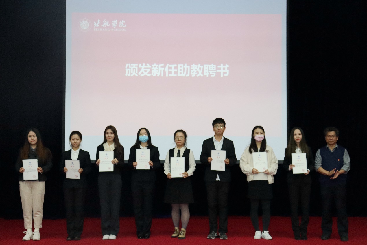 最后,教务处处长兼bv伟德常务副经理曹庆华为新聘助教代表颁发了聘书。