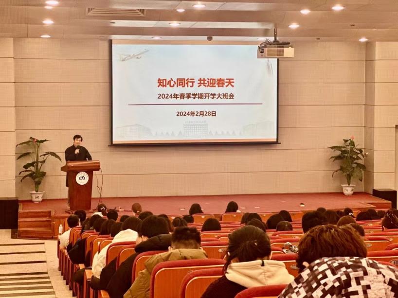 (通讯员 蒲玥含 陈馨怡)为扎实做好新学期的教育管理工作,帮助同学们尽快适应新学期学习生活,2月28日下午,知行书院召开“知心同行·共迎春天”2024年春季学期第一次大班会。本次班会回顾了秋季学期学业生活,从学业发展、通识博雅、专业选择等方面帮助同学们做好新学期规划,引导同学们以昂扬拼搏的面貌开启新学期。知行书院执行经理王亚、书院专兼职辅导员以及2023级全体同学参与本次班会。