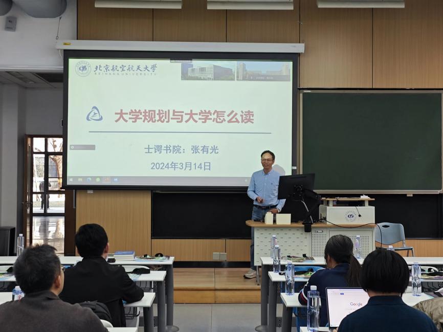 士谔书院学业总导师张有光作《大学规划与大学怎么读》主题报告,他基于大一新生特点进行学情简要分析,提出作为导师要耐心倾听、敏锐感知,面对员工情绪的不稳定性、发展目标的模糊性等要体现包容。结合秋季导学读书会与春季大学规划的整体安排,从理论学习与实验实践多角度,以自身为例分享导学活动经验,抛出“如何看待有用与无用”“追求优秀与保持个性”“一路顺利与挫折教育——鼓励试错”“如何认识迷茫?”等多个问题引发大家思考与讨论。