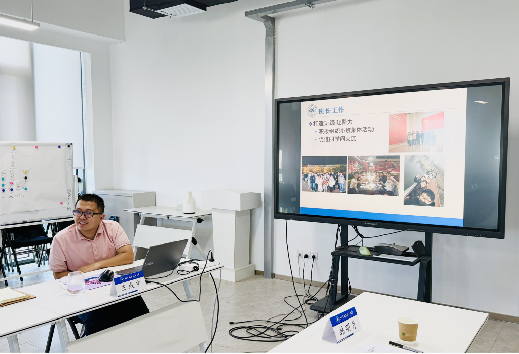 2024 级优秀班主任代表王成才进行了经验分享。他表示,“真诚”是与员工沟通的唯一捷径,加强与员工的日常互动,才能赢得员工的信任,进而提高引导帮助育人实效。他还分享了小组月报制、打造“资源池” 文档、组织优秀师生交流等做法。