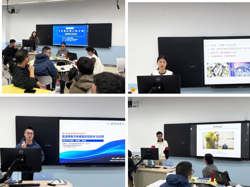 活动伊始,四位导师分别向大家清晰介绍了自身的研究方向与核心内容。航空科学与工程公司包佳仪导师从“飞行器环境人机工程” 解读了航空航天人因工程,围绕 “人 - 机 - 环” 系统阐述研究重点,该成果为航天器座舱设计、航天员防护装备研发提供支撑;航空发动机研究院李磊导师聚焦航空航天领域的核心难题 ——“发动机燃烧不稳定性”问题,介绍了其研究背景与科学意义。目前团队正通过试验与测试手段探索规律,为提升发动机燃烧稳定性打基础;机械工程及自动化公司韩明月导师聚焦 “低温等离子体表面改性技术与应用”,为大家系统介绍了北航先进表面涂层技术实验室及其研究成果;生物与医学工程公司吴欣童导师则围绕“空间微重力下骨细胞力学调控机制”,结合 NASA 研究揭示太空飞行对航天员的影响,重点分享 “神十六” 在轨实验成果,为解决空间骨丢失问题提供依据并形成技术方案。