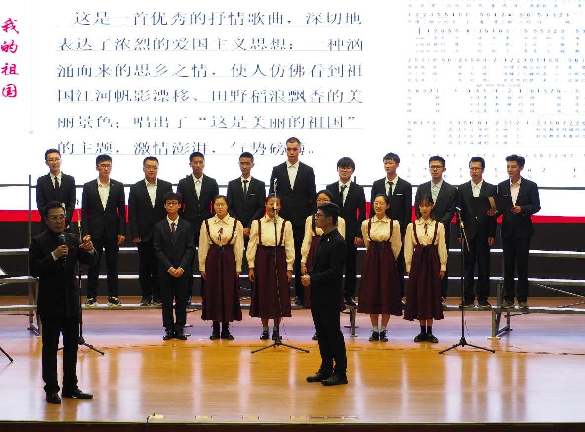 最后,全体合唱团老师和现场观众一齐合唱《我和我的祖国》,阎伯政老师邀请书院合唱团的同学们上台一同歌唱,辅以欢快的舞蹈让所有同学沉浸其中,唱出了中华儿女满腔的爱国豪情!